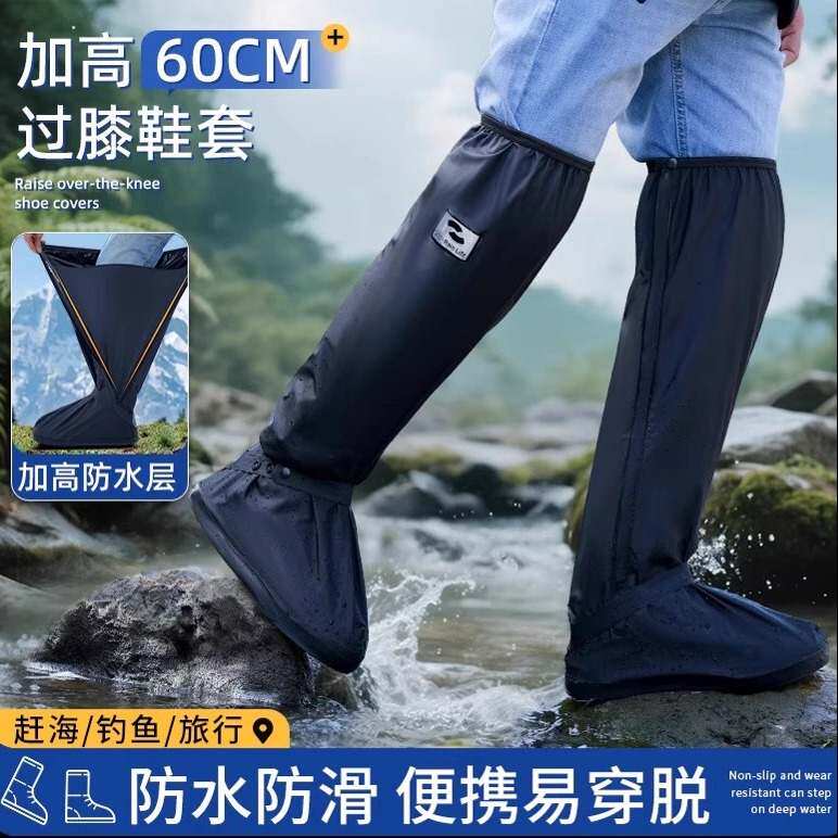 雨天防水鞋套雨靴便携高筒一次性水鞋雨鞋套成人赶海防沙防滑加厚