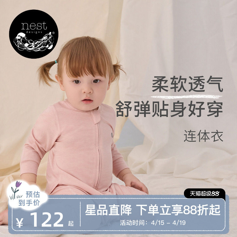 Nest Designs婴儿长袖连体衣春夏新生儿宝宝包屁衣爬服儿童家居服