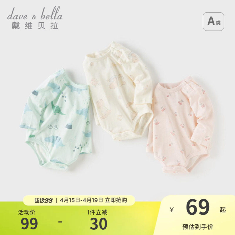 戴维贝拉A类新生儿包屁衣宝宝春装连体衣男女宝纯棉长袖婴儿衣服