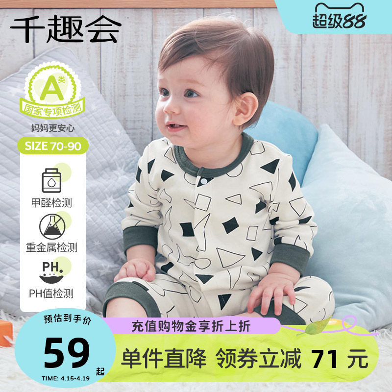 千趣会婴幼儿春夏连体衣薄款长袖纯棉男女宝宝哈衣包屁衣卡通爬服
