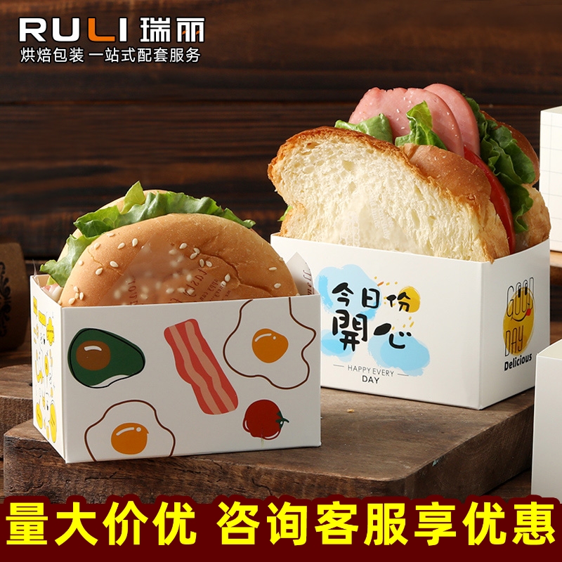 瑞丽韩国网红三明治包装纸厚蛋吐司面包打包盒子汉堡油纸纸托纸盒