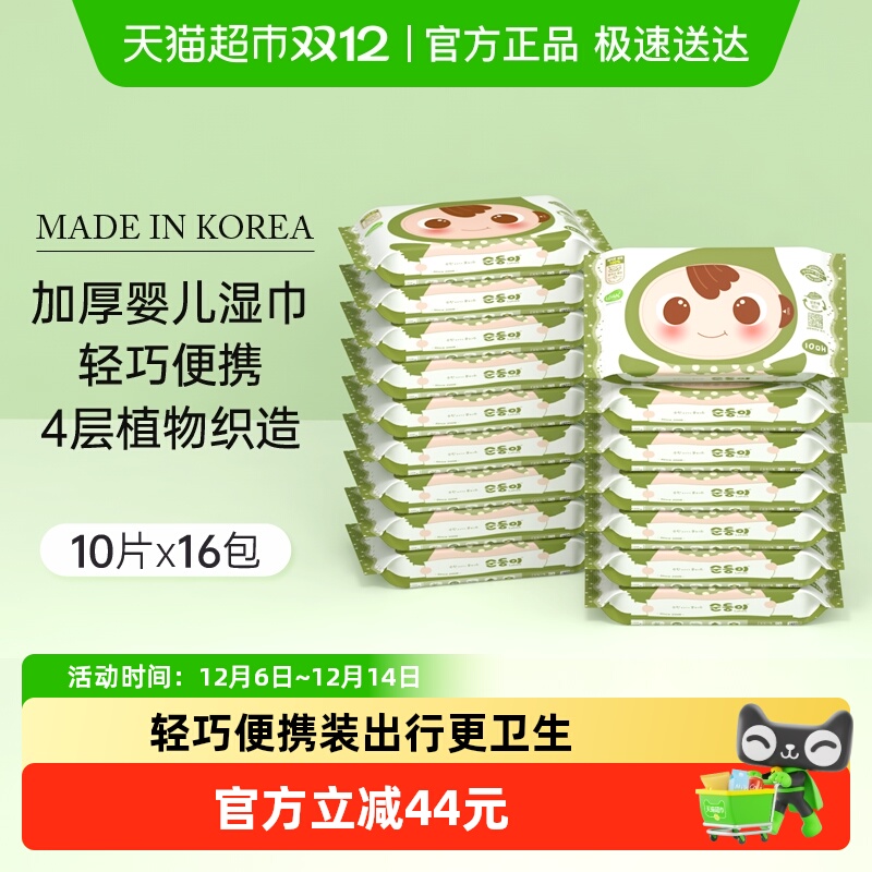韩国进口顺顺儿婴儿湿巾纸新生儿宝宝手口湿纸巾小包装10片*16包