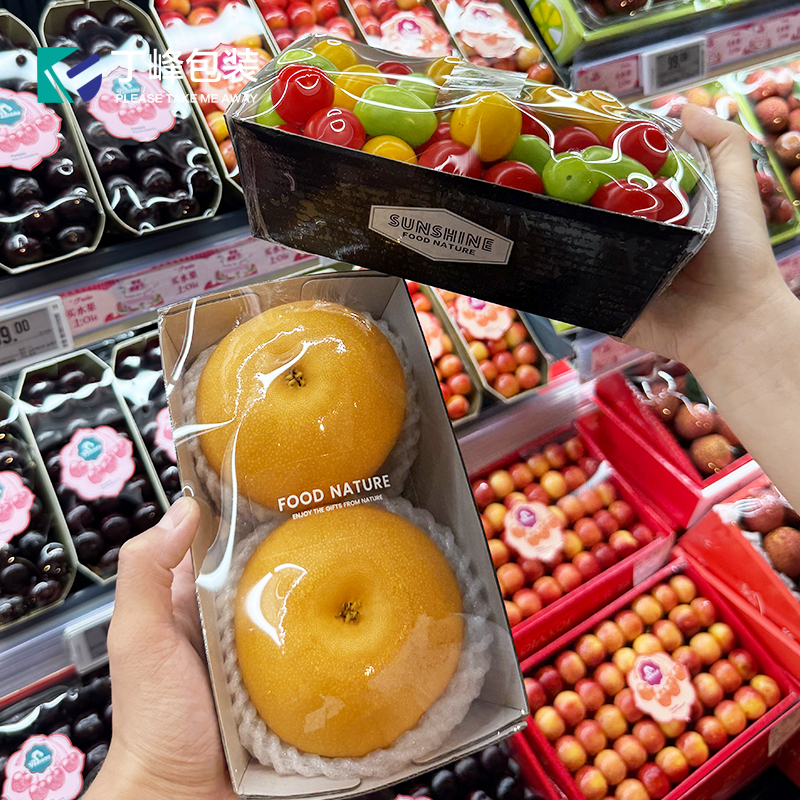 丁峰·韩国水果打包盒水果包装高级托盘小番茄葡萄通用陈列纸托盘