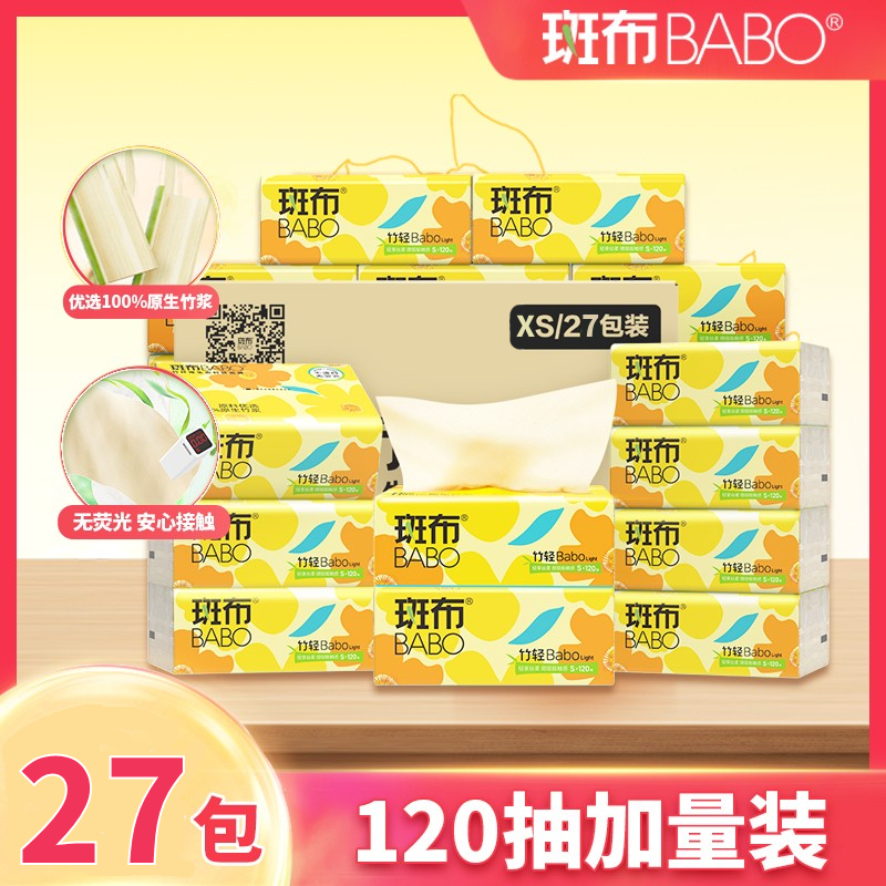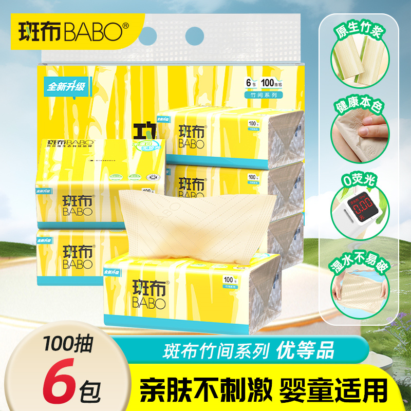 斑布BABO竹浆本色纸巾竹纤维抽纸家用整箱实惠装餐巾纸卫生纸便携