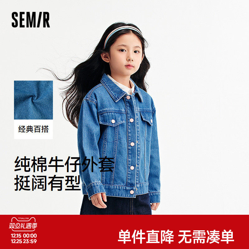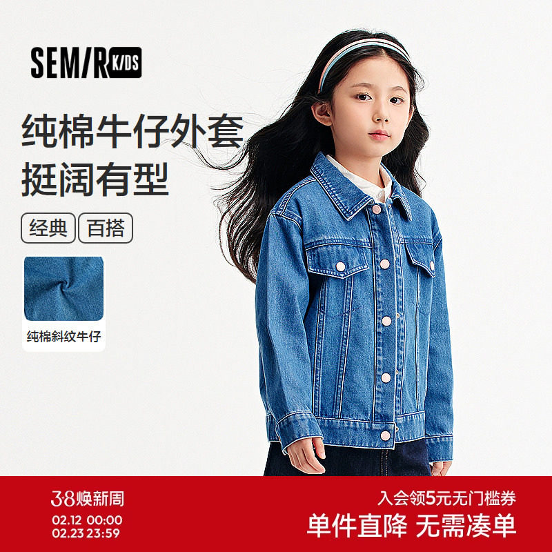 森马儿童牛仔外套复古港风女童装纯棉秋装百搭翻领夹克学生上衣潮