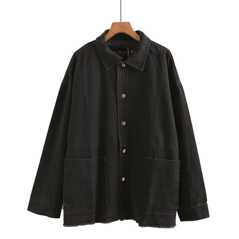 日系复古工装夹克男女春秋宽松大码情侣款牛仔衣学生潮流胖子外套