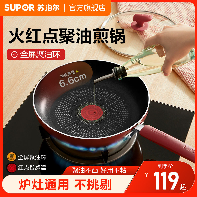 苏泊尔平底锅不粘锅家用红点聚油不沾锅煤气电磁炉燃气灶专用煎锅