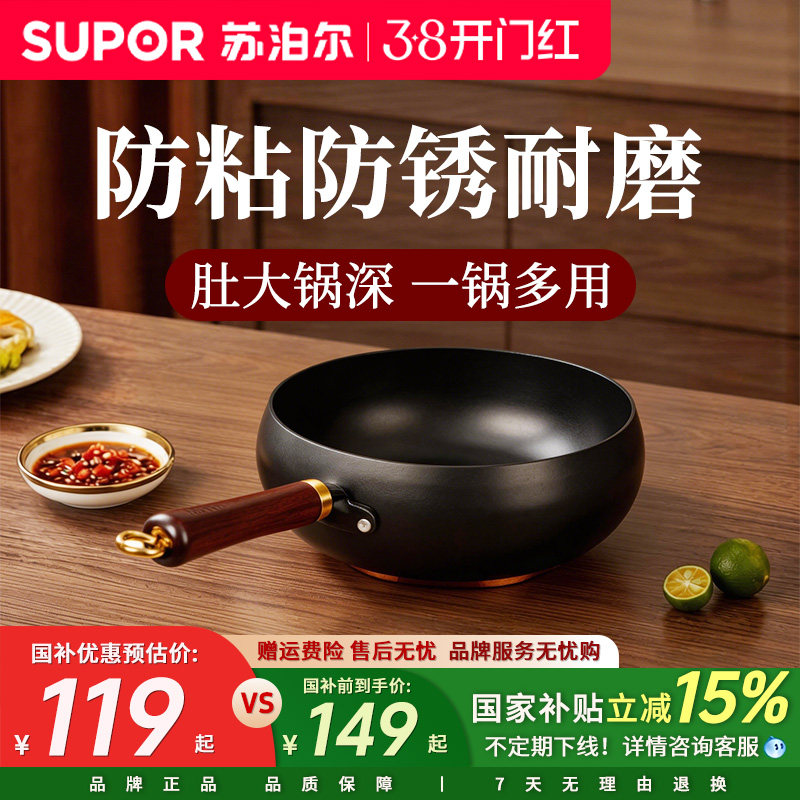 苏泊尔不粘锅炒锅家用炒菜锅电磁炉专用燃气煤气灶适用锅具平底锅