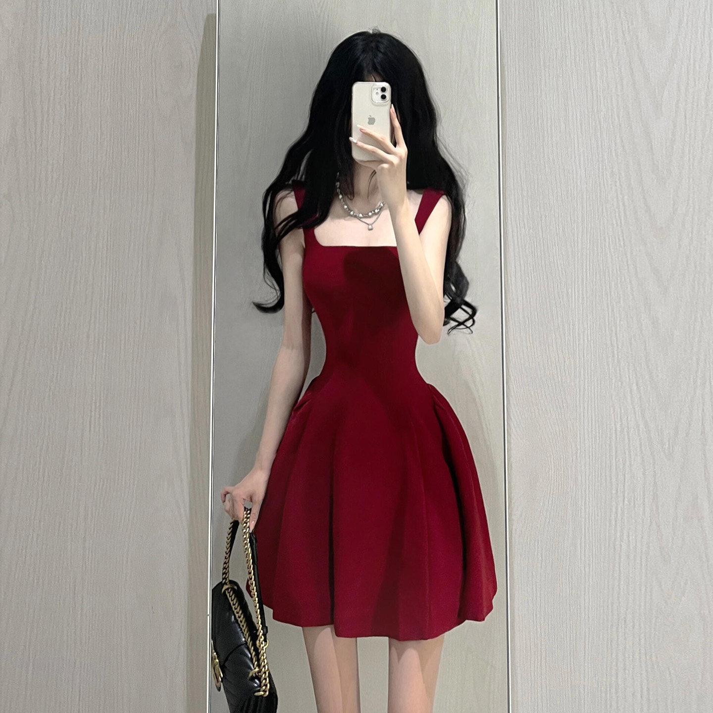 红色吊带连衣裙2025款收腰显瘦高级感小个子赫本风穿搭红裙子短裙