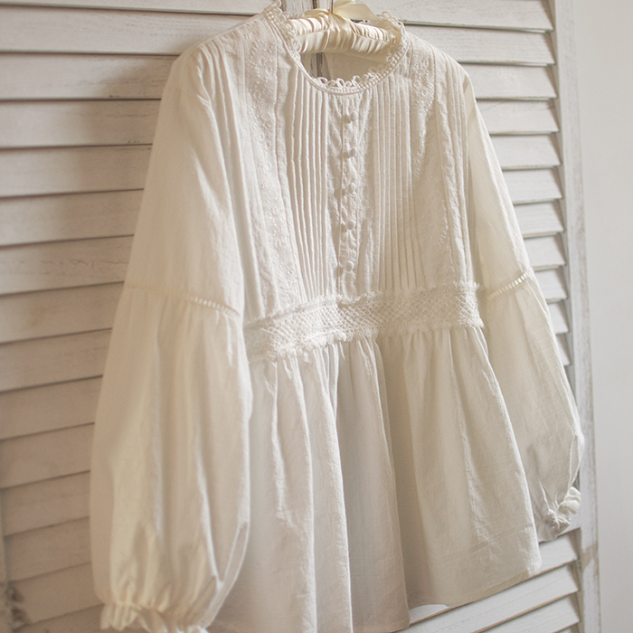 23韩国刺绣纯棉蓬蓬裙娃娃衫文艺小清新蕾丝花边宽松长袖白衬衫女