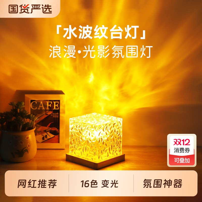 水波纹氛围灯卧室情调小夜灯床头灯台灯电竞夫妻房气氛灯生日礼物