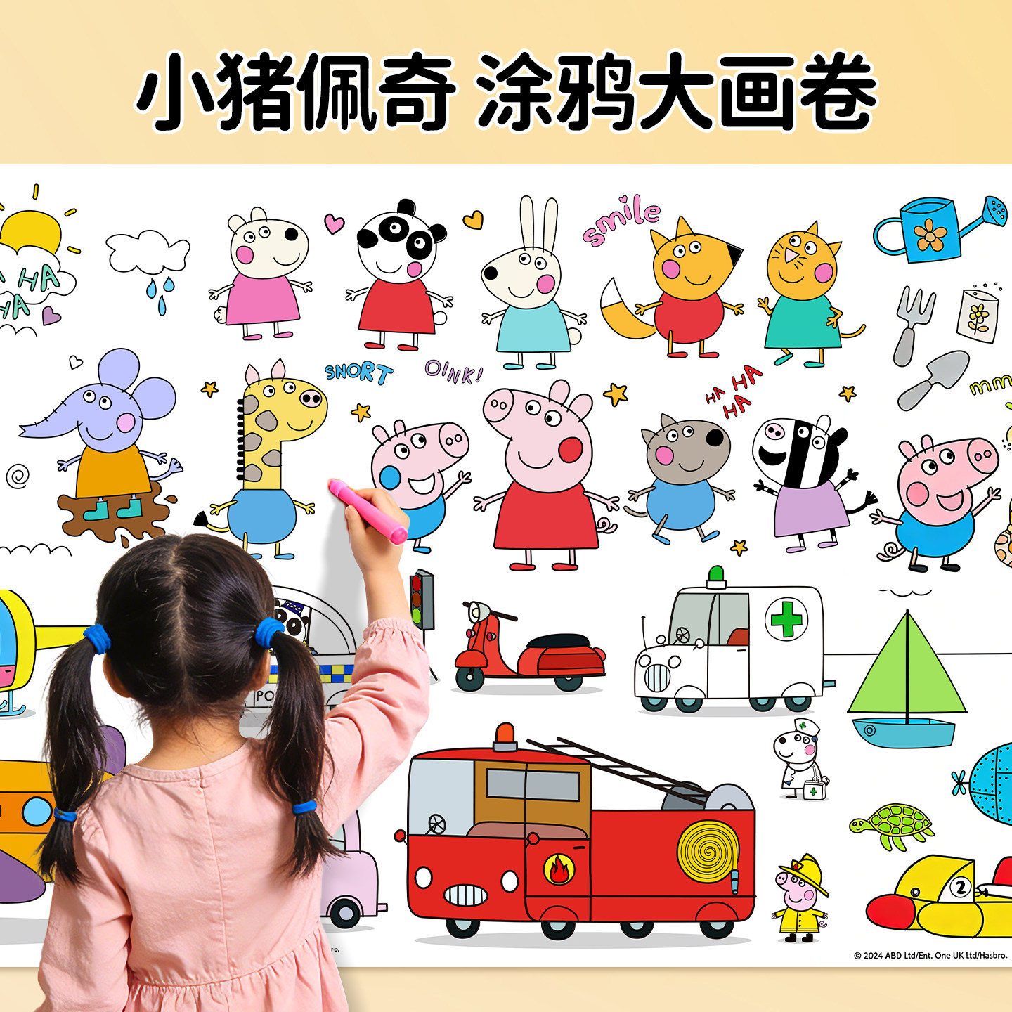 小猪佩奇涂鸦大画卷儿童绘画本长画纸幼儿园宝宝涂色画布可贴可剪