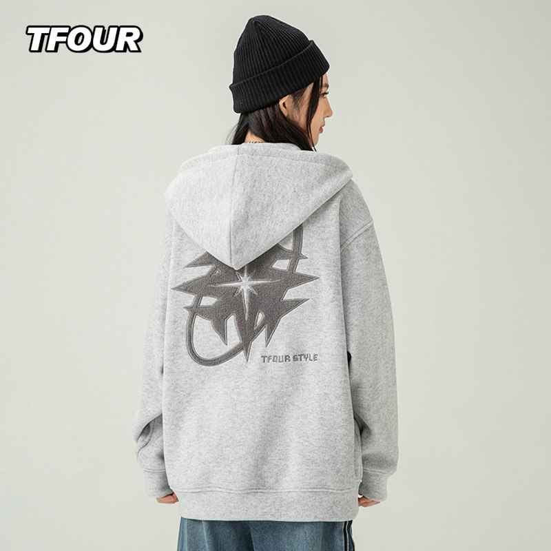 TFOUR 八芒星2025秋冬新款外套美式潮牌宽松卫衣男女加绒开衫棉衣