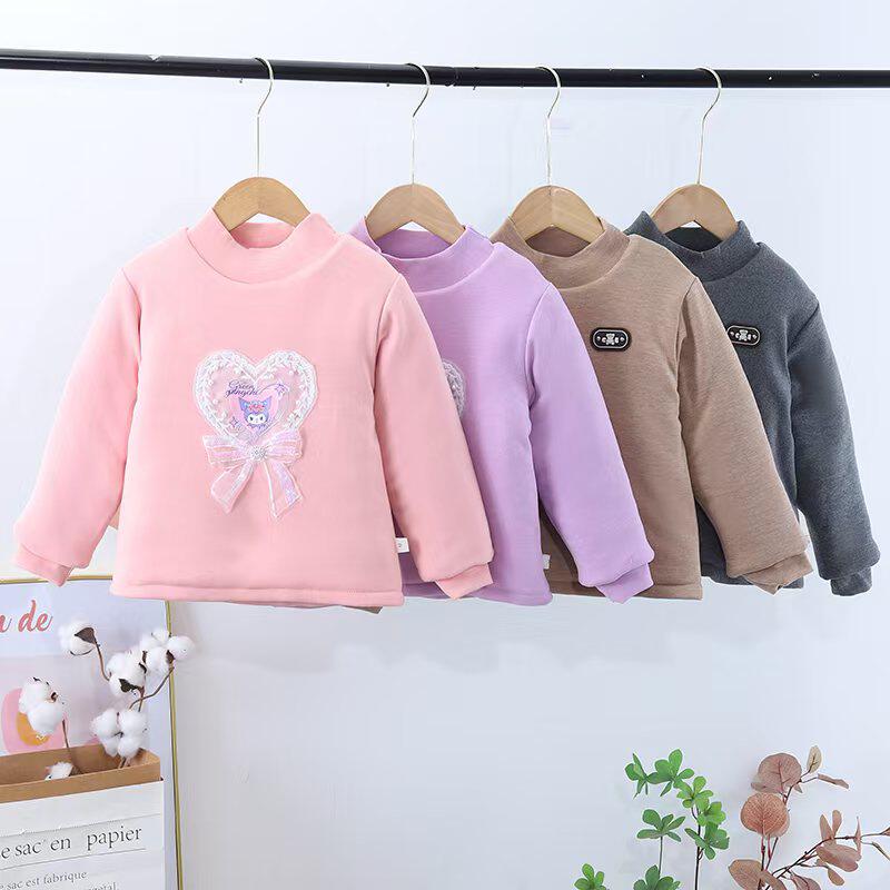 儿童宝宝棉袄冬加绒加厚男女童半高领卡通卫衣婴儿保暖打底衫上衣