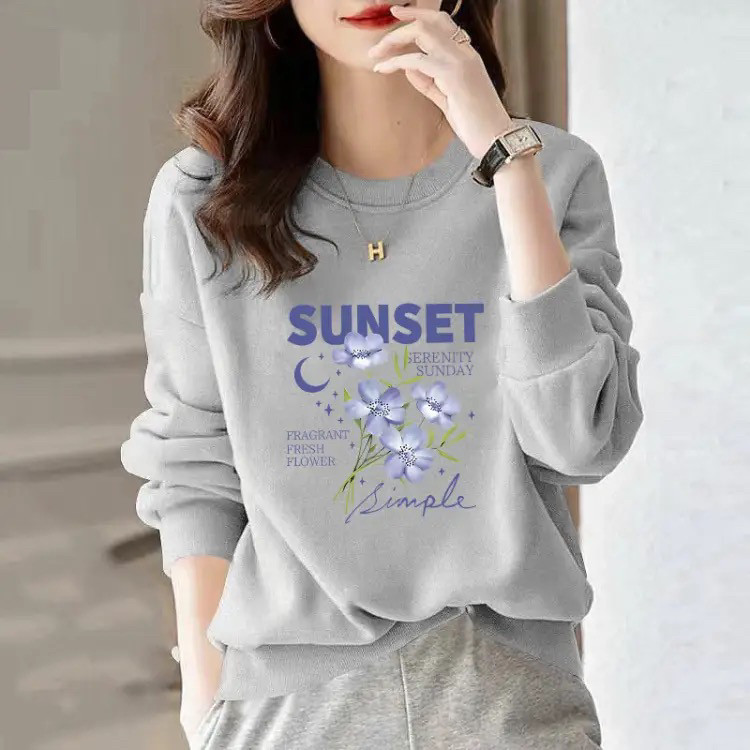 圆领纯棉毛圈卫衣2026新款女士正肩长袖春秋冬款百搭宽松印花上衣