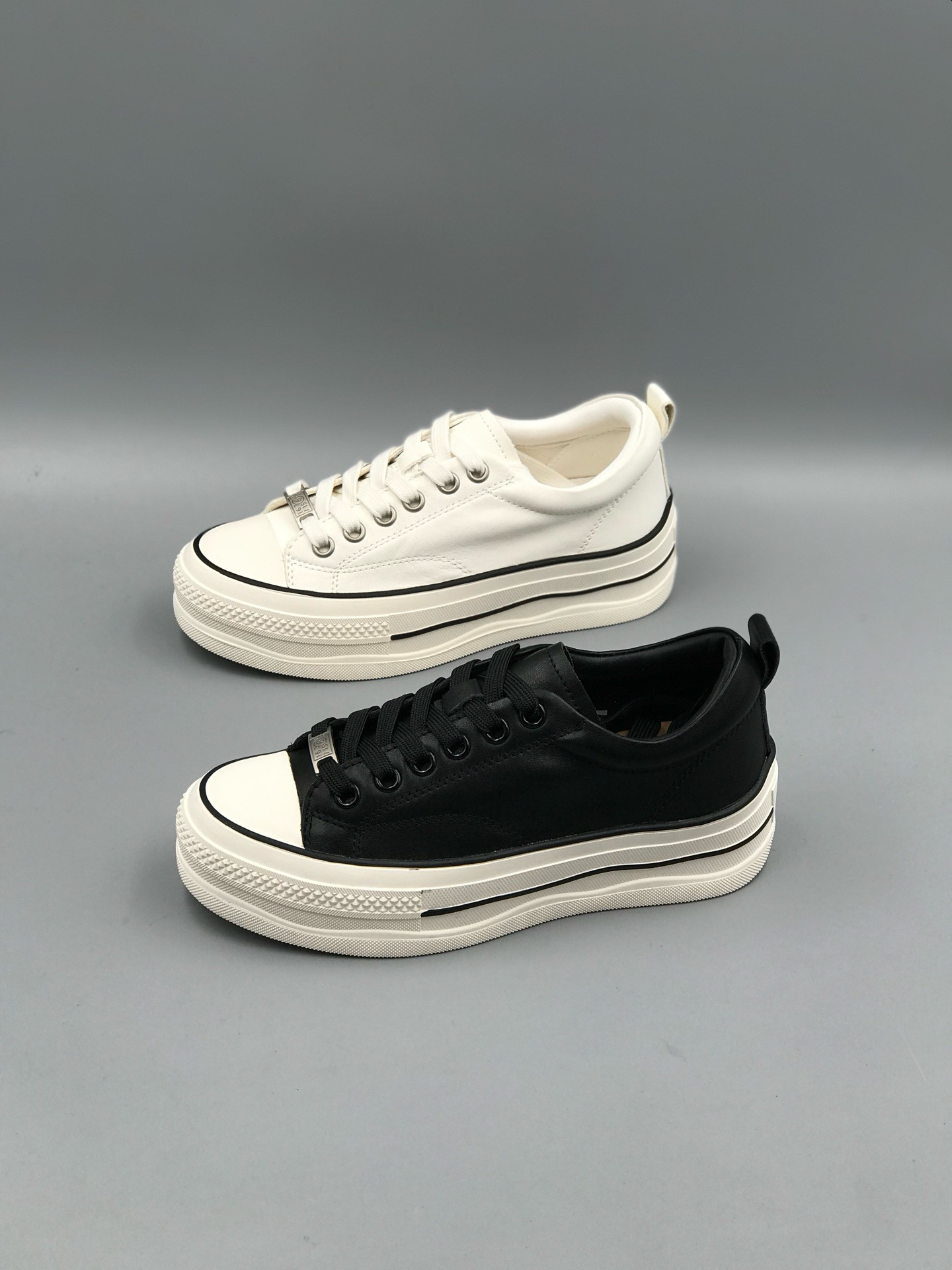 - 系带小白鞋 皮