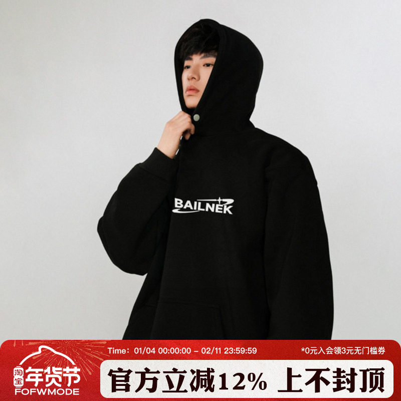 FOFWMODE 春装美式硅胶字母连帽卫衣宽松情侣款学生套头潮流外套