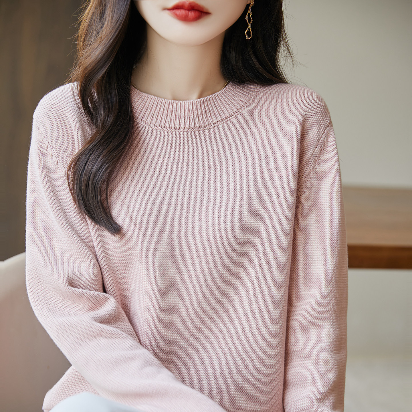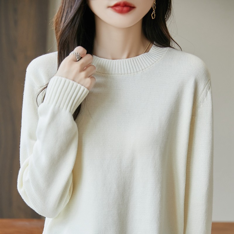 2025秋冬圆领套头毛衣女宽松显瘦针织衫内搭打底衫上衣纯棉线