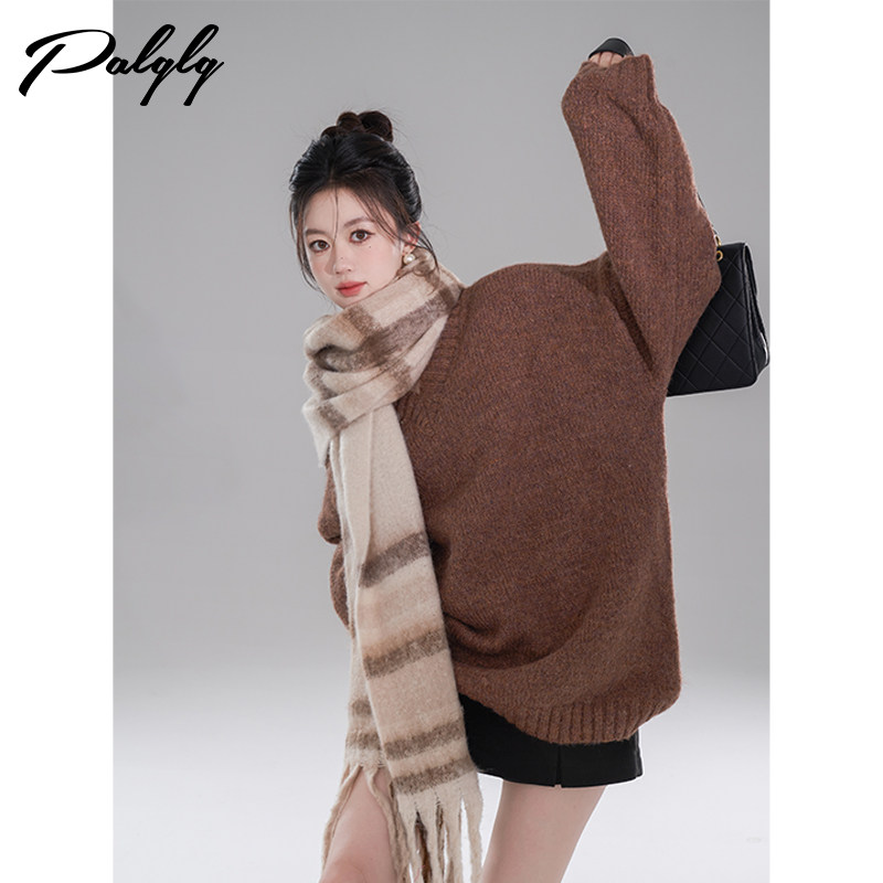 司●2025冬季新品 套头毛衣女宽松慵懒风圆领打底针织衫上衣1060
