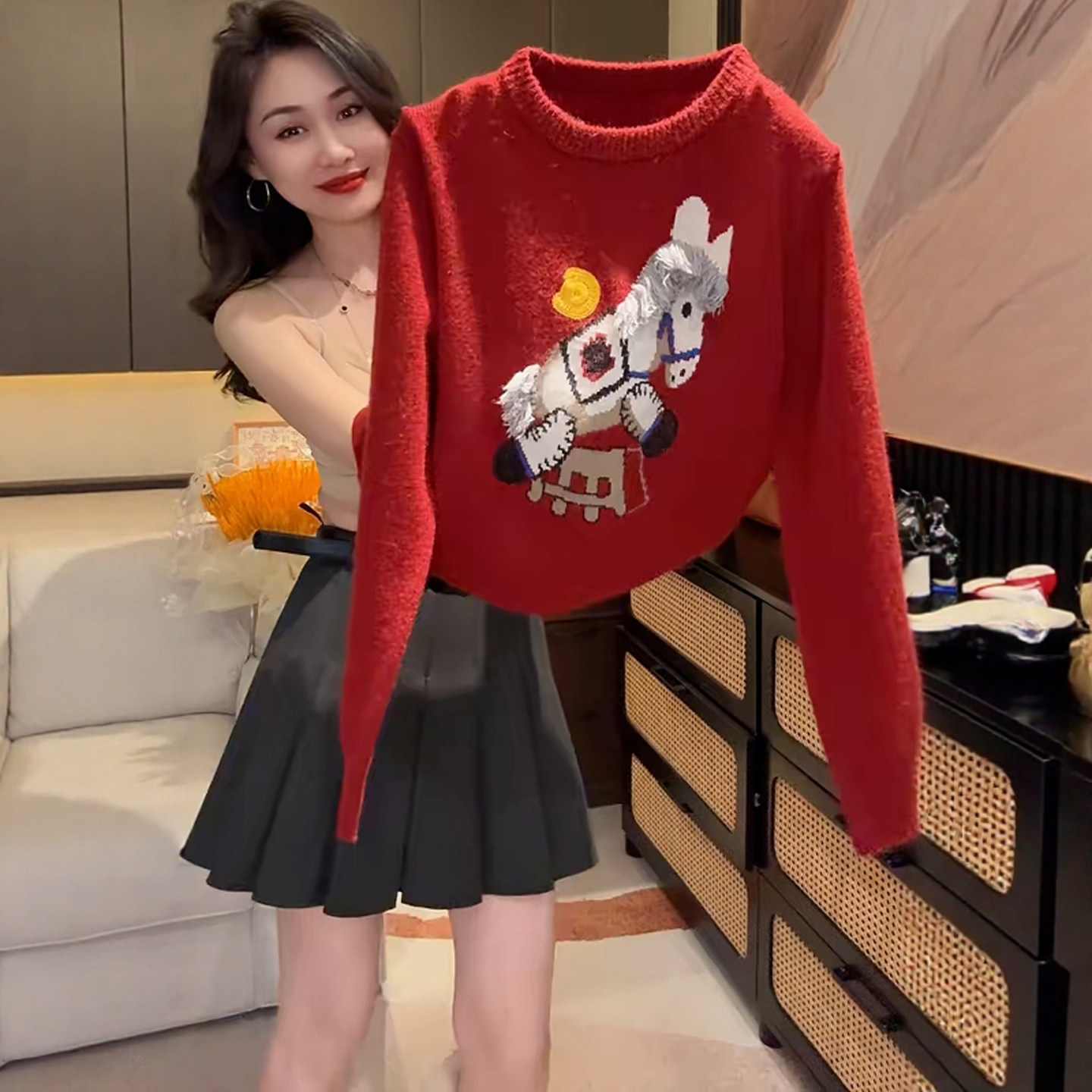 - 红色毛衣
