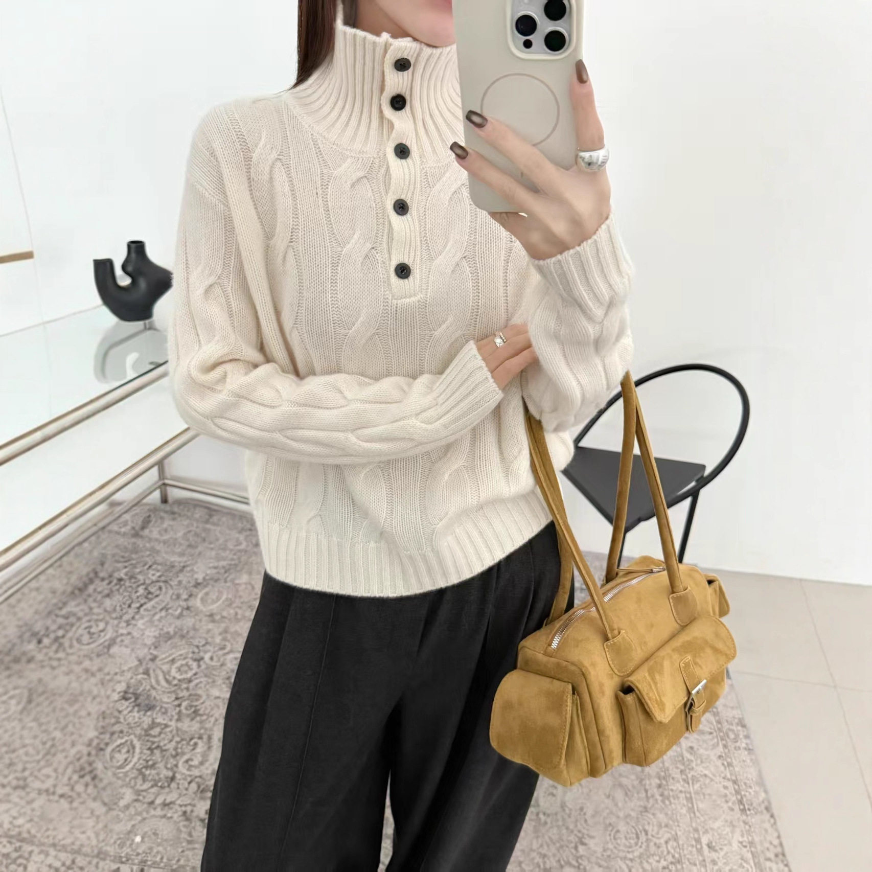 - 高领羊绒衫女宽松
