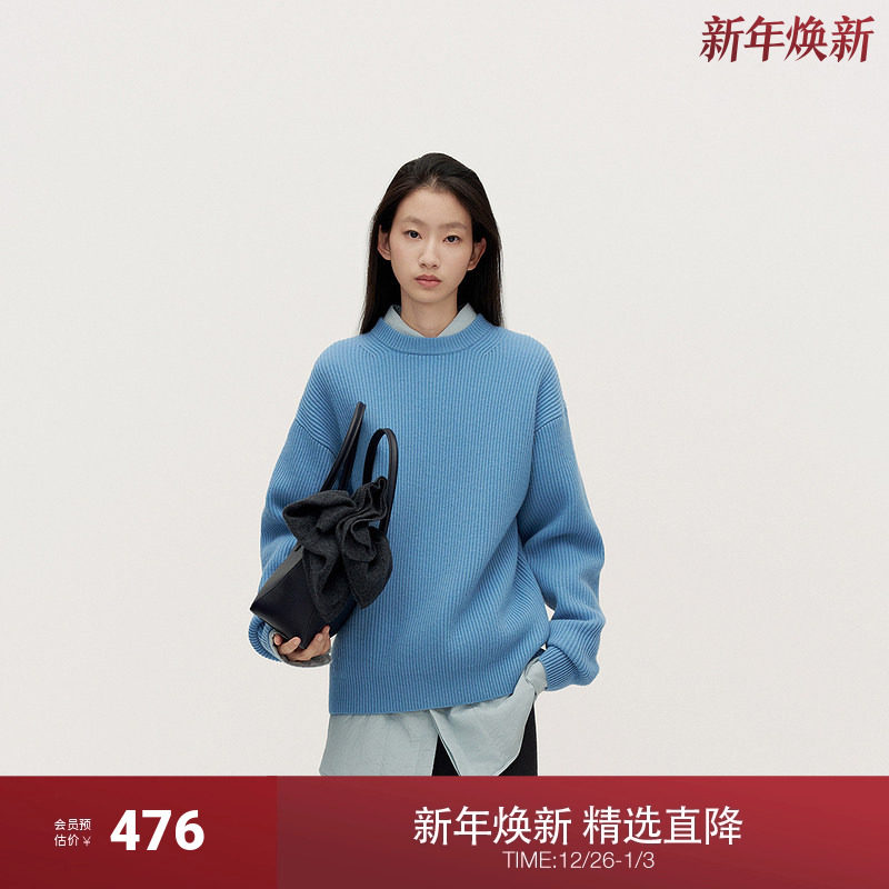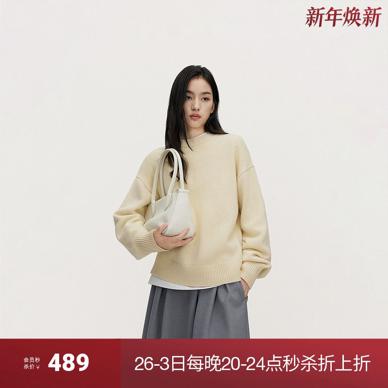 OCHIRLY欧时力 100%绵羊毛套头毛衣女宽松休闲松弛感2024秋冬新品