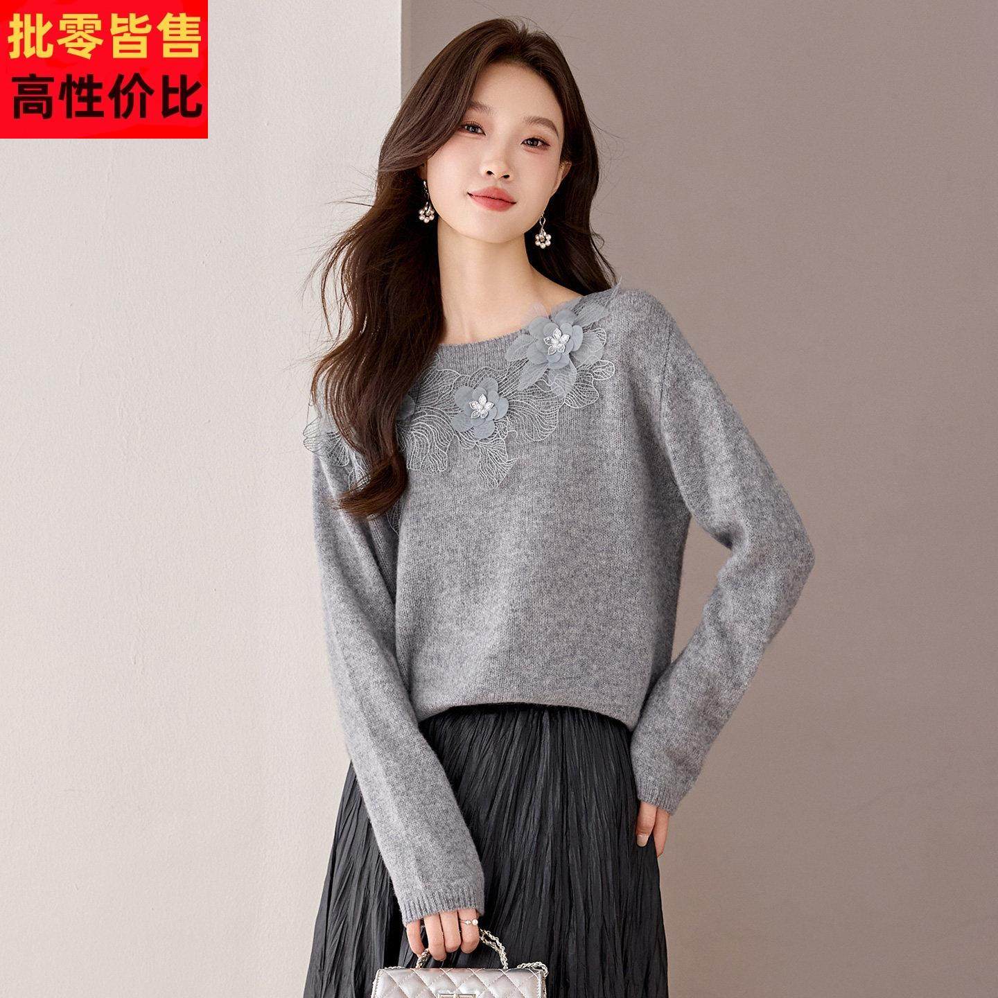 LYRCCOA官方授权 设计感钉钻花朵套头毛衣女宽松减龄时尚上衣秋冬