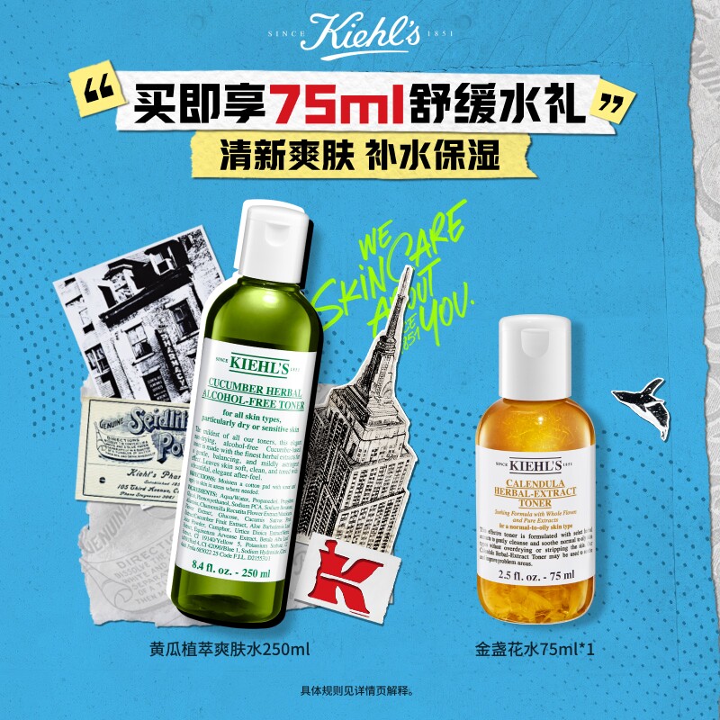 京卫本草HA小黄瓜紧肤水248ml爽肤水黄瓜水补水保湿紧致舒缓 国货
