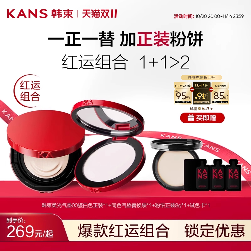 【双11抢购】韩束红运粉饼气垫组套定妆控油持妆遮瑕不脱妆cc霜