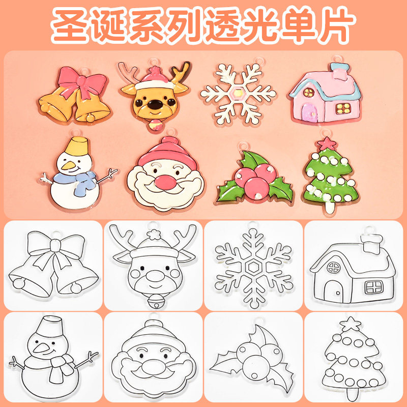 免烤胶画绘画diy滴胶手工玩具挂件儿童颜料填色吊坠模具圣诞配件