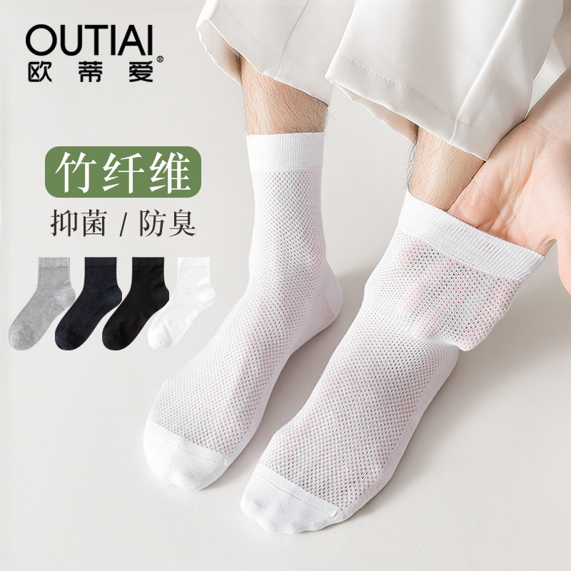 欧蒂爱竹纤维袜子男夏季薄款透气抗菌防臭吸汗中筒夏天大码网眼袜