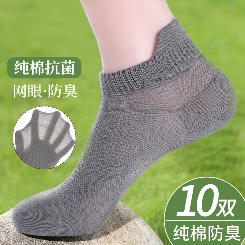 【100%棉】袜子男士夏季薄款纯棉短袜抗菌全棉吸汗防臭透气网眼袜