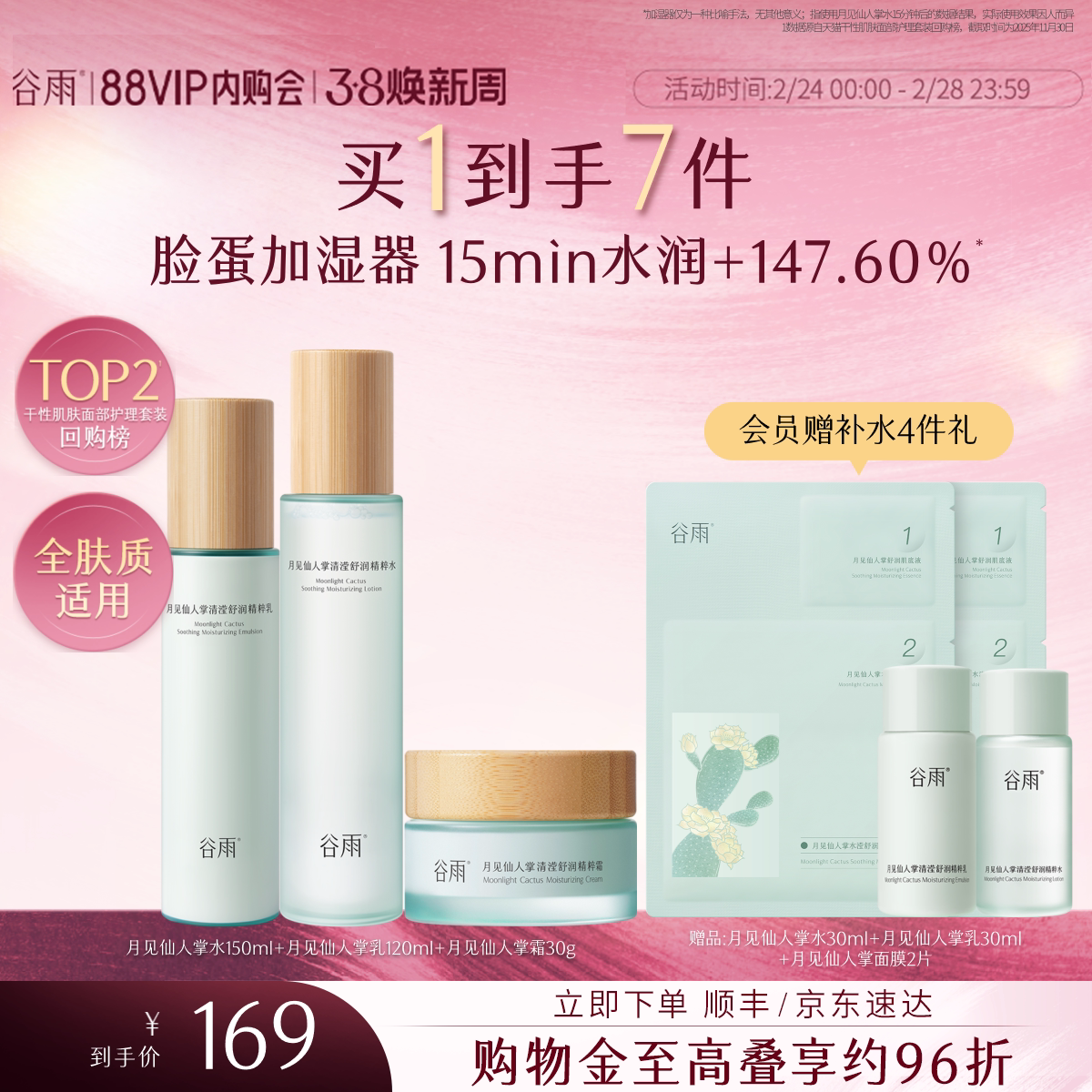 谷雨月见仙人掌水乳套装补水保湿干皮舒缓学生化妆品护肤品女正品