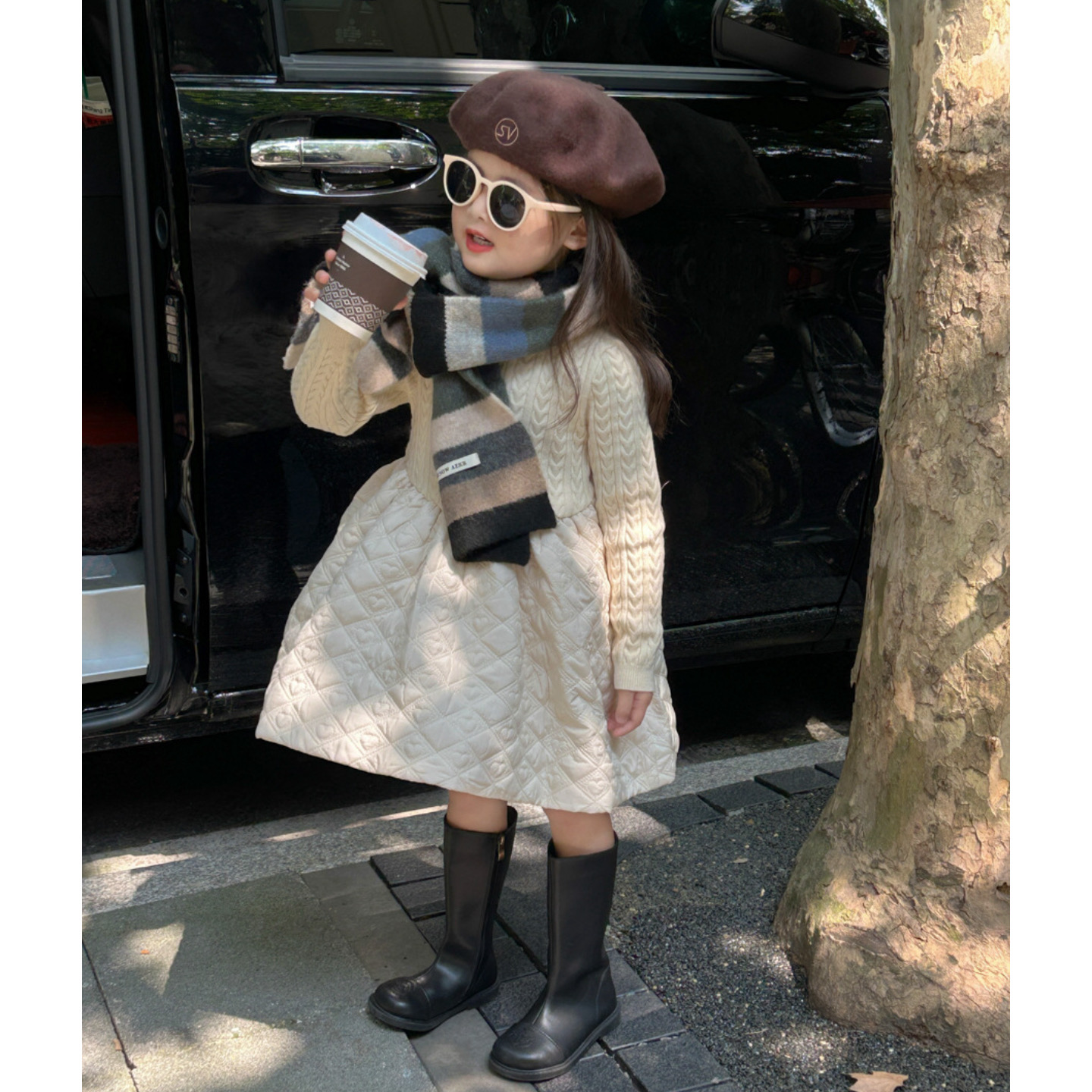 韩国童装儿童秋冬新款连衣裙2024女童毛衣拼接夹棉半裙女孩子