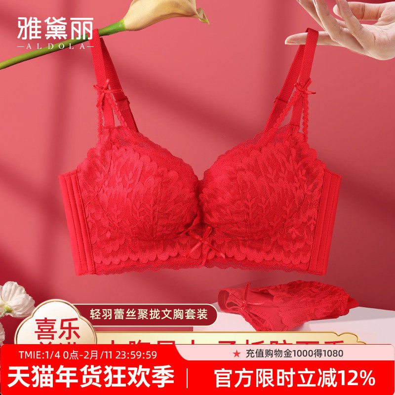 雅黛丽2025蛇年大红色文胸套装小胸显大聚拢收副乳防下垂无钢圈