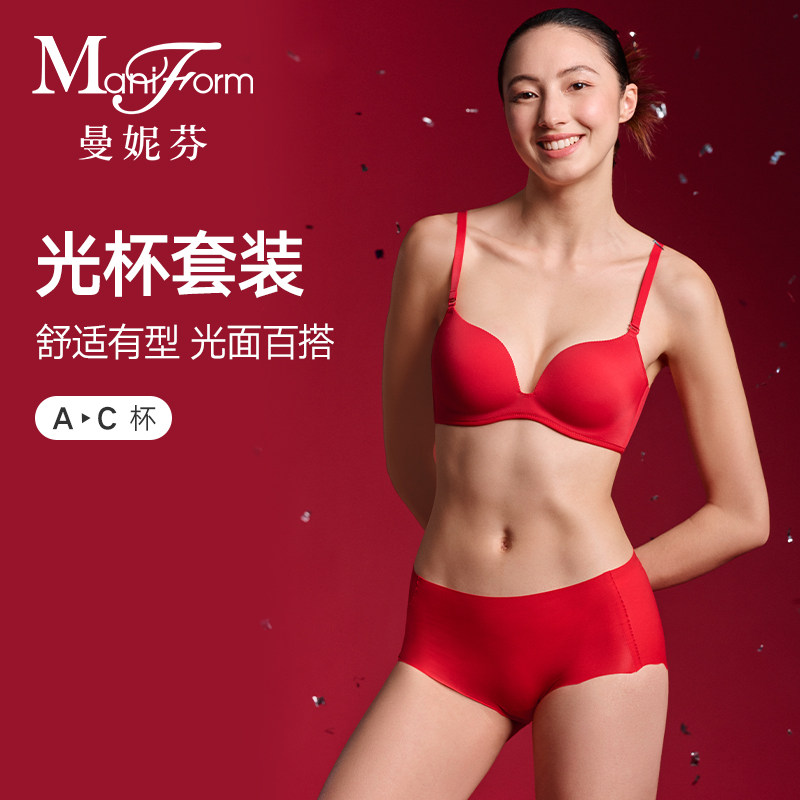 今尚儿红色文胸套装润养肤感杯女聚拢大胸显小本命年无痕内衣送礼