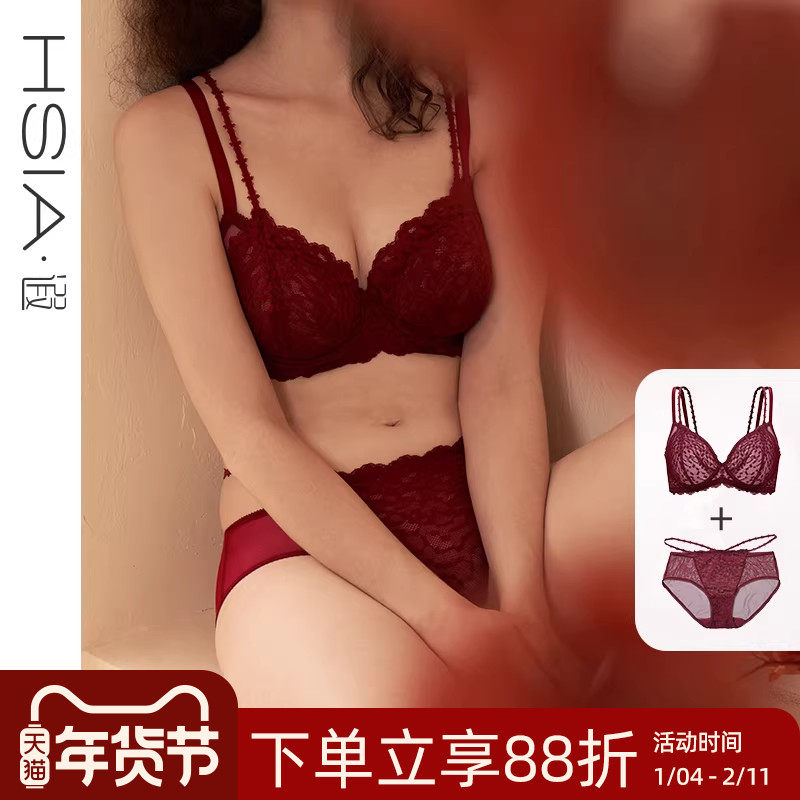 草本初色内衣套装本命年女红色结婚马年小胸聚拢无钢圈收副乳文胸