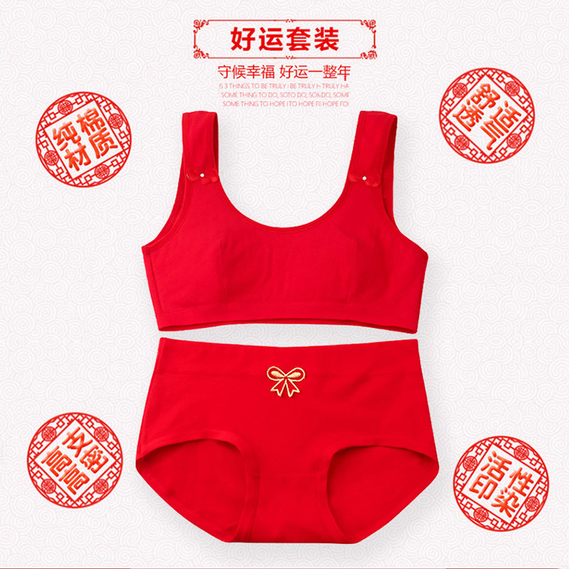 新年内衣礼盒装本命年红色文胸套装结婚新娘小胸聚拢女无痕背心式