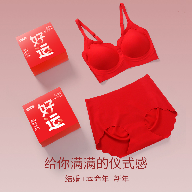 都市丽人本命年内衣内裤女礼盒聚拢无痕新娘结婚礼物红色文胸套装