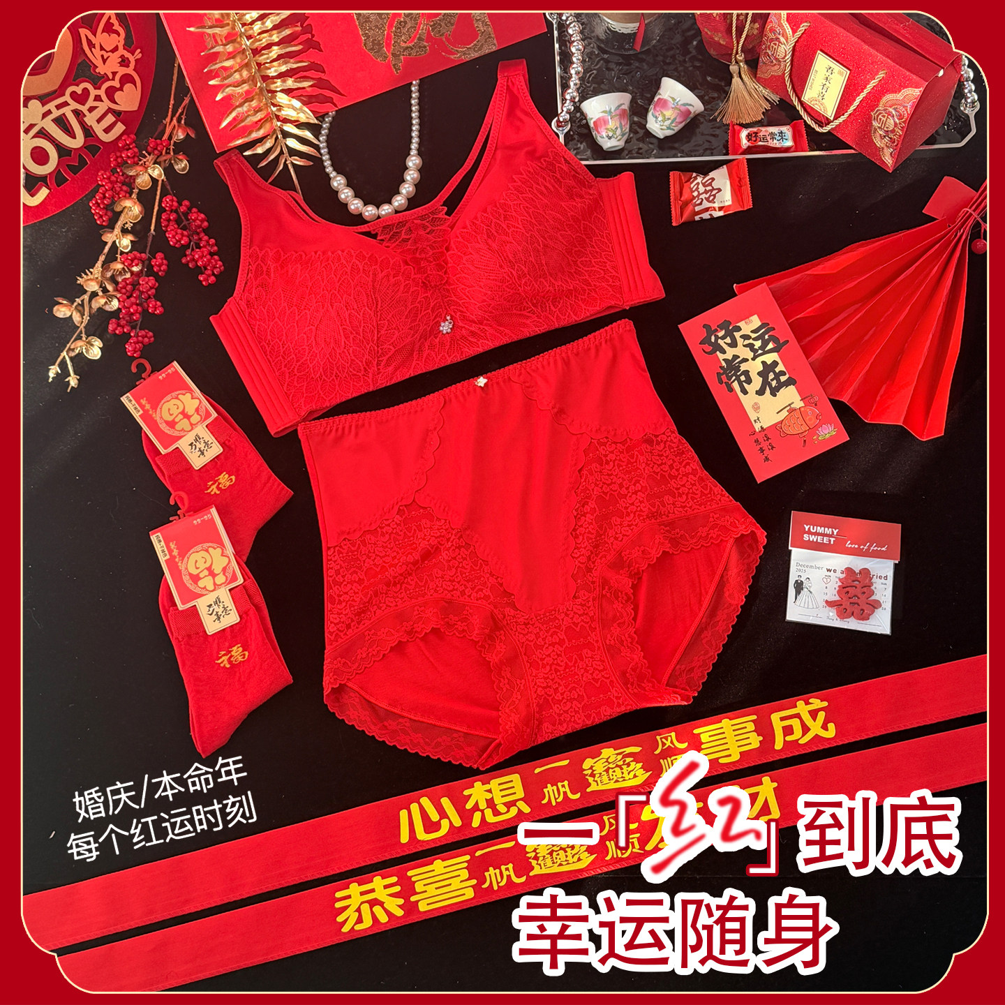 新年马年本命年新娘结婚内衣女小胸聚拢红色文胸套装薄款圣诞礼物