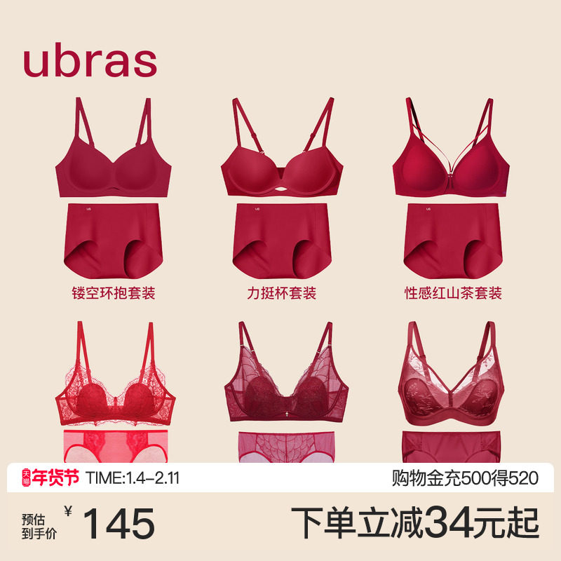 ubras大红盒本命年红色内衣套装无尺码2026新款送礼物无钢圈文胸