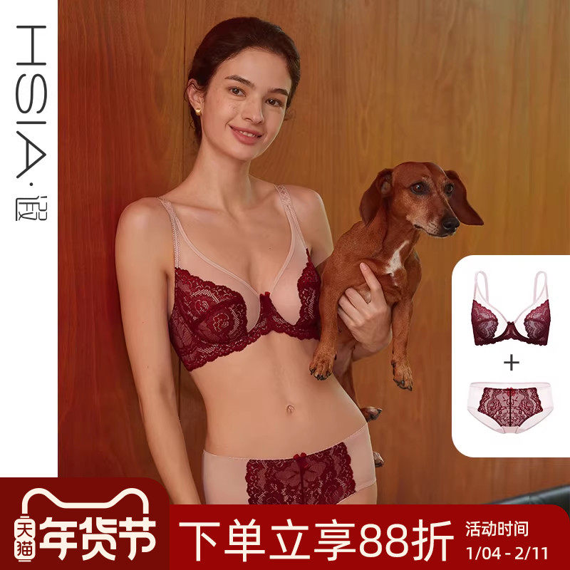 ubras红山茶大胸显小内衣收副乳防下垂红色本命年套装送礼文胸