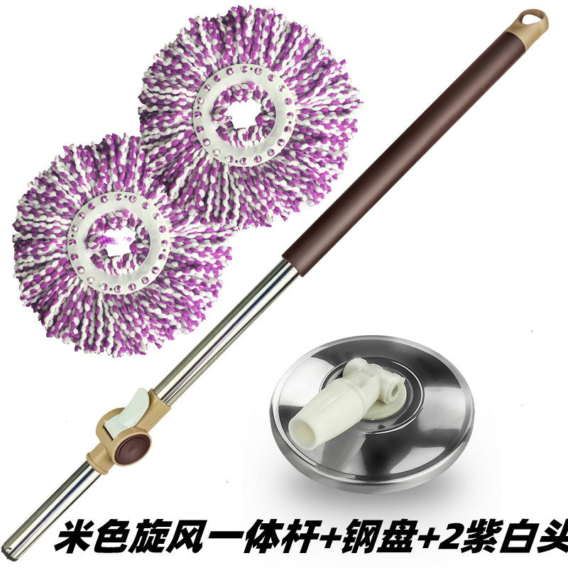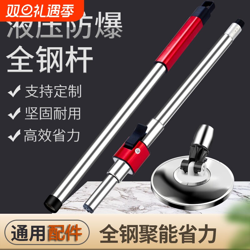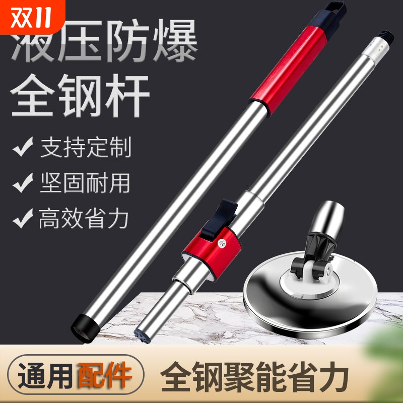 不锈钢加厚旋转拖把杆通用一体手压式拖布杆拖把头墩布头替换配件