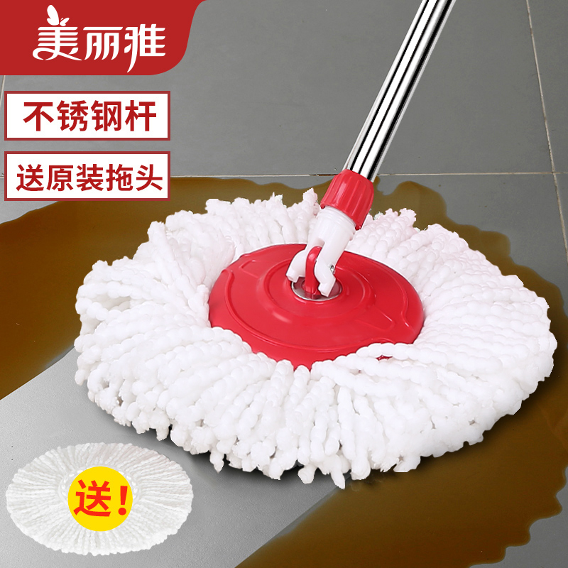 美丽雅旋转拖把杆通用配件手压式双驱动不锈钢自动甩水家用拖把杆