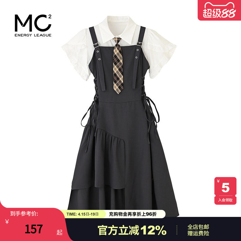 mc2黑色背带裙套装女夏学院风不规则设计感小个子收腰显瘦赠领带