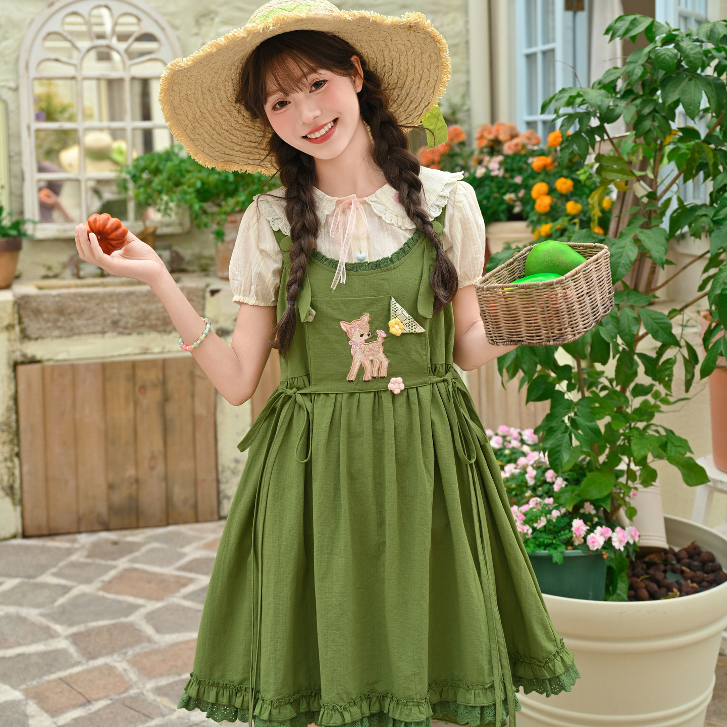 森女部落森系百搭小鹿刺绣设计感背带连衣裙女2026新款收腰显瘦夏