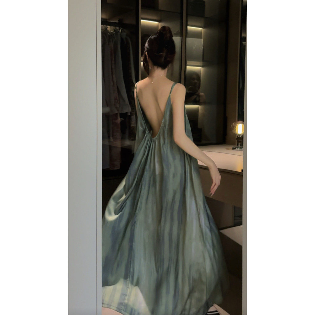 夏季独特扎染睡裙女款高级显瘦吊带连衣裙纯欲美背带胸垫外穿睡衣