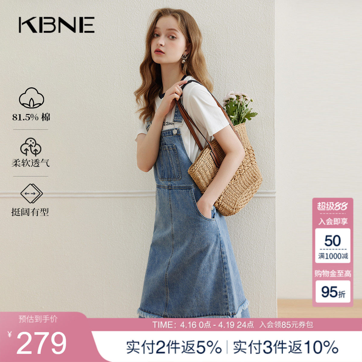 KBNE蓝色牛仔背带裙连衣裙女夏季新款棉质复古小个子宽松显瘦裙子
