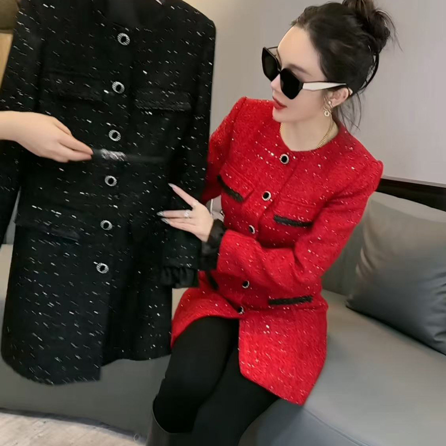 气质粗花呢冬季连衣裙女高端精致双排扣漂亮独特冬裙过年战袍女装
