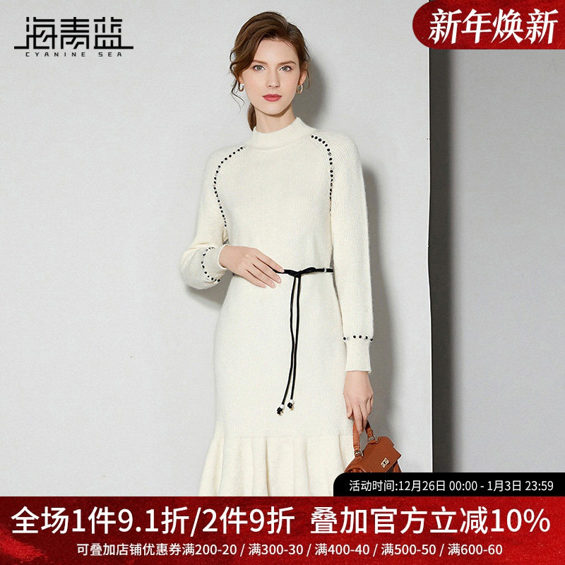 海青蓝 针织连衣裙女2025年新款时尚气质女装高级纯色长袖秋冬裙